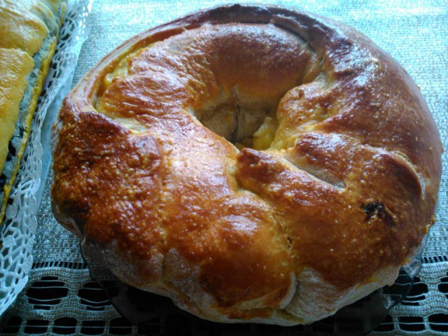 1.A tészta hozzávalóit jól kidolgozzuk, szokás szerint kelt tésztát dagasztunk és a kétszeresére kelesztjük. A pudingporokat a tejjel felfőzzük, még melegen belekeverjük a cukrot majd langyosra hűtjük.